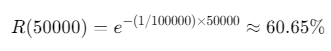 這意味著,該服務器運行5萬小時后,仍有約60%的概率未發生故障。